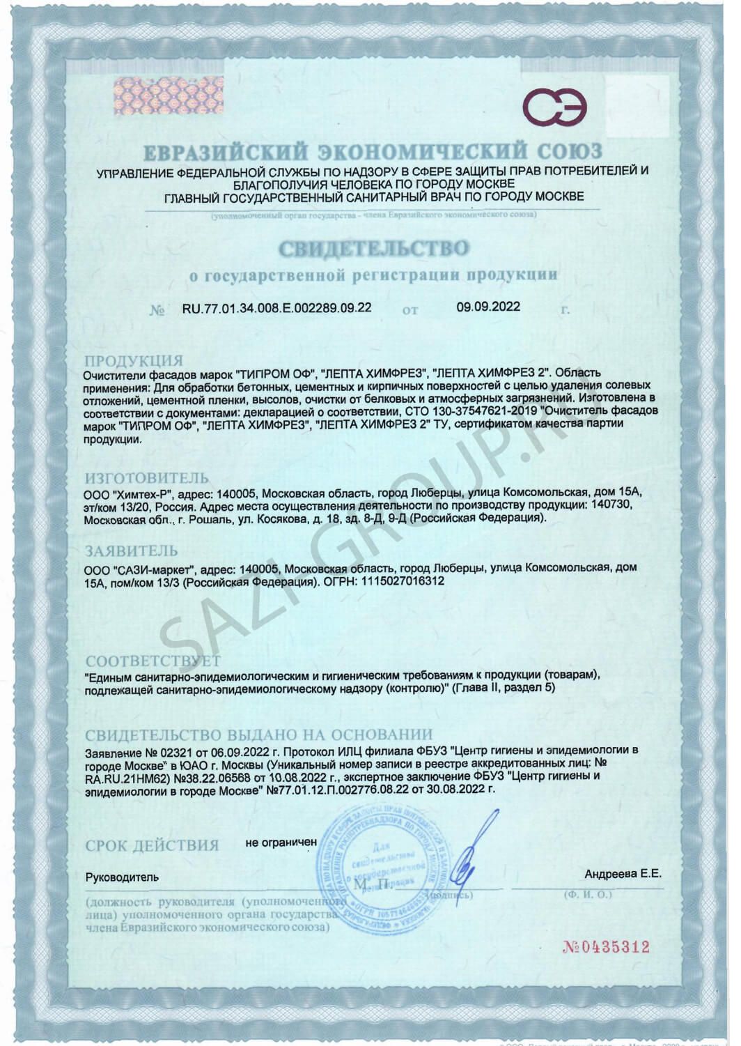 Для очистки фасадов из кирпича, натурального и искусственного камня, штукатурки от солевых отложений (высолов), остатков цементного раствора и стойких атмосферных загрязнений.