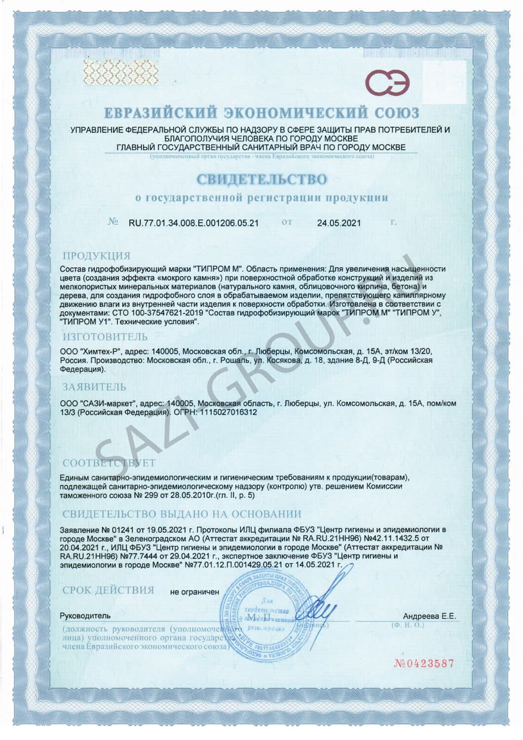 После высыхания, через 24-48 часов, для защиты фасадов от атмосферной влаги и связанных с этим повторных высолов, рекомендуется провести обработку поверхности гидрофобизирующими составами серии "ТИПРОМ®" в соответствии с инструкциями по работе с указанными материалами.